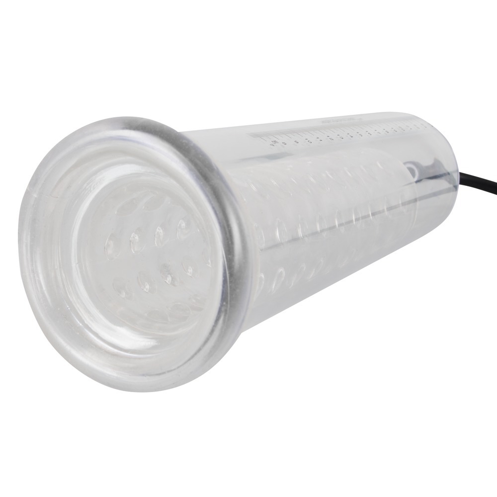 Transparent penis pump with safety pressure valve and measuring scale. 9.5 inches long with 7 to 8 inches insertable length from You2Toys.